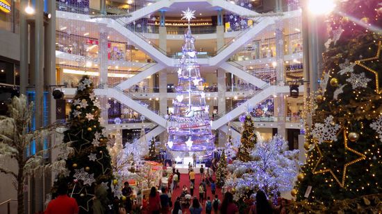 im Berjaya Times Square begrüsst uns ein künstlicher Nadelbaum