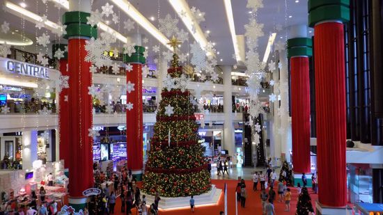 mit über 800 Bekleidungsläden auf 9 Stockwerken ist Weihnachtsstimmung, die Kassen klingeln. Zurück am Berjaya Times Square werden wir mit ‚weihnachtlichen Jazz‘ unterhalten