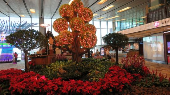 Der Shuttle zum Flughafen kommt pünktlich, der Flug selbst abgesehen von der Abflugzeit (2:30 MORGENS!!) absolut ereignislos. Im Singapore Airport kommen wir an einem neuen, für uns bisher unbekannten Terminal (C), aber auch hier nur die bekannte Blütenpracht,