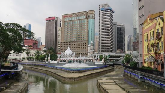 bevor sie dann, genauso wie die Express S-Bahn in KL Sentral (=Rieseneinkaufszentrum und S-Bahn Knotenpunkt) endet. Mit der S-Bahn für MR 1,20 noch eine Station weiter zum alten Central Market und schon stehen wir vor dem uns bereits von früheren Aufenthalten bekannten Geo Hotel.