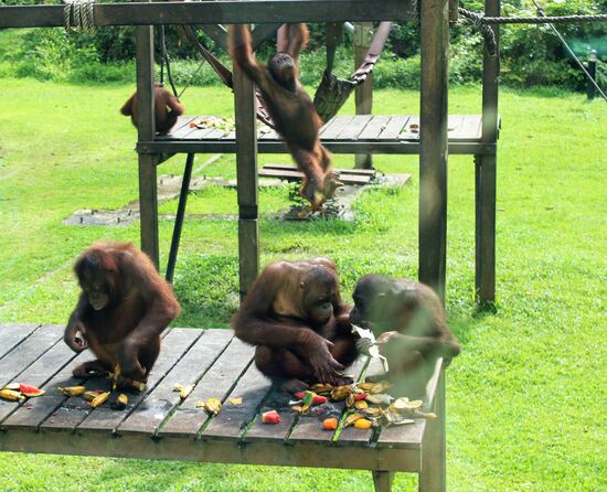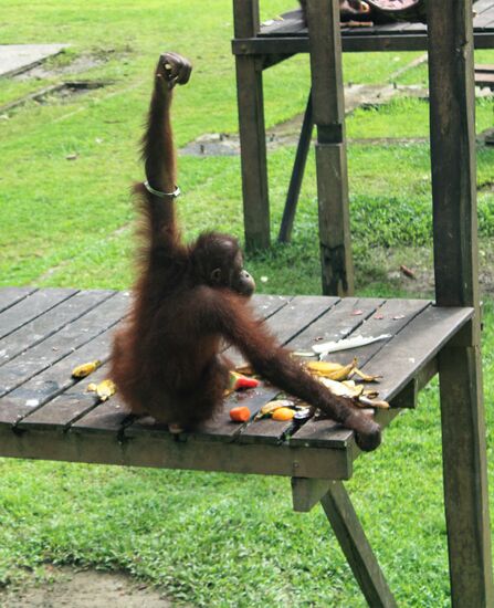 Wir  besuchen ein Schutzreservat für Orang Utans. Hier werden junge Orang Utans und verletzte aufgezogen, um sie dann, wenn es möglich ist, wieder auszugliedern.