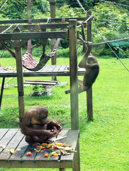 Orang Utan heisst auf malayisch Waldmensch. Wenn man sie sieht, kommt es einem auch fast so vor, als habe man einfach nur sehr haarige Zeitgenossen vor sich.