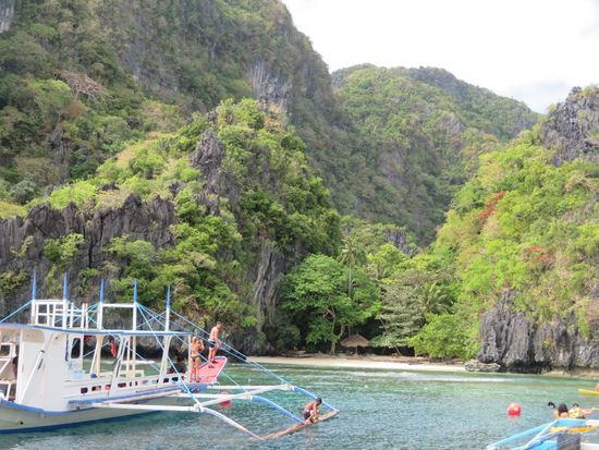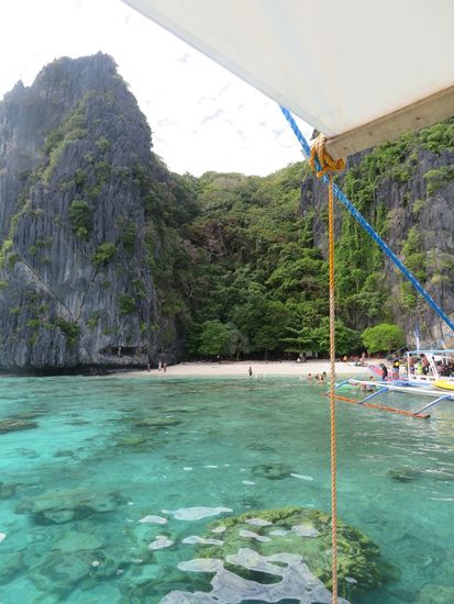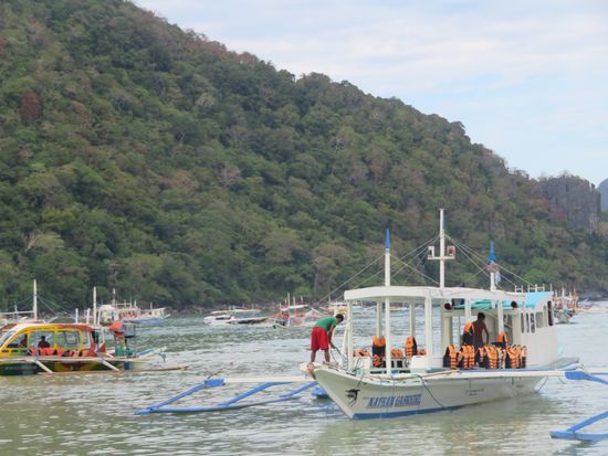 Wir entscheiden uns für Tour A. Man soll ja vorne anfangen. Die Touren dauern von ca. 10:00 bis 16:00 Uhr, gehen am "Hafen" los und man besucht mind. 5 wirklich atemberaubende Inseln und Strände mit Zeit zum Schnorcheln und Paddeln. Vermittelt werden die Touren überall zum gleichen Preis. Hinzu kommen dann aber noch div. Kosten wie Paddelboot, Eintritt, Schwimmschuhe (weil man eigentlich immer, wenn man aussteigt über Riffe gehen muß), sodaß 3.650 PHP für uns beide zusammenkommen.