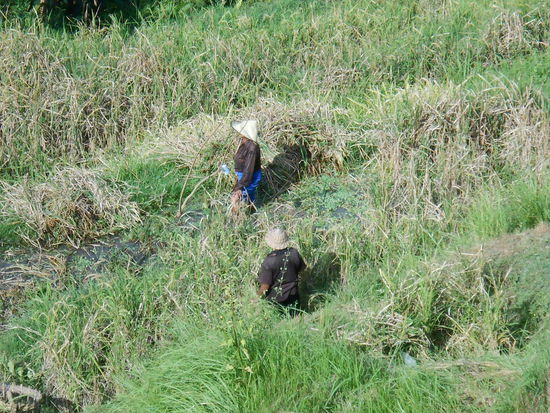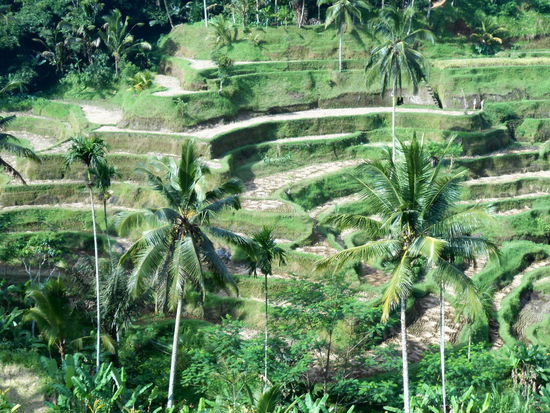 Auf kleinen süßen Fußwegen kann man durch die Terassen spazieren und einheimische Reisfarmer treffen. So ist es mein Bali - total verliebt in die Insel jetzt auch noch in den Terassen herumgeklettert.