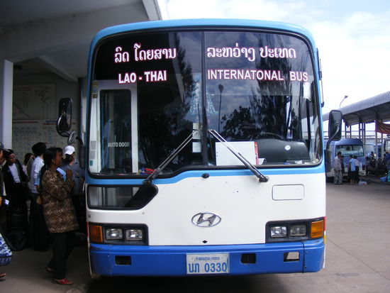 Los ging die Busfahrt um 11.30 Uhr von Busbahnhof in Vientiane. Kosten: 40 Baht = 0,80 Euro..... VOn Vientiane ging es Richtung Friendship-Bridge. Direkt vor der Brücke aus dem Bus raus, zum laotischen Grenzposten den Pass stempeln lassen und weider rein in den Bus. Dauer... ca. 10 Minuten. Dann ging es über die Brücke über den Mekong und ich war wieder in Thailand. Aber auch dort wieder raus aus dem Bus und an der Immigration anstehen für den Einreisestempel. Dauer hier..... über eine Stunde. Da soll einer mal noch sagen in Laos wäre alles so langsam.....