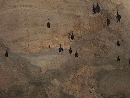 Nach 114 Stufen sind wir triefend und außer Atem am Höhleneingang angekommen. Jokee hat sich vor dem Aufstieg noch nen Energie Drink geholt, er war der letzte von uns 4. Im ersten Raum der Höhle ist eine Buddha Statue, der zweite Raum ist Buddhas room, der nächste der monkey room, dann der krokodil room. Dies wurde uns mit einer Taschenlampe an den Höhlenwänden angezeigt, ich hab das nicht gesehen, weil die Taschenlampe genauso wenig Energie hatte, wie unser Guide. An den Höhlendecken hingen ganz viele Fledermäuse und ich bin froh, dass sie sich durch uns haben nicht stören lassen. Große und kleine Stalagmiten und Stalagtiten (oh je schreibt man das so?) waren zu sehen. Am Ende angekommen, den ganzen Weg wieder zurück, Kopf einziehen, könnte sonst schmerzhaft werden, und dann wieder raus ins Warme und zu unserem letzten Punkt unserer Adventure Tour.