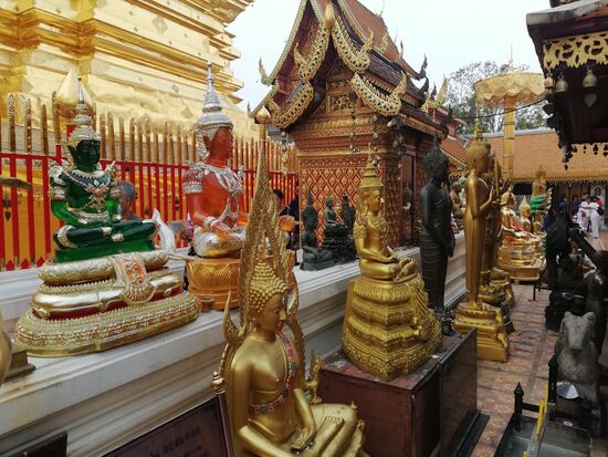 Keine 200 Kilometer von Chiang Rai liegt sein größerer Bruder, die Stadt Chiang Mai. Mit offiziell rund 200.000 Einwohnern wirkt die Metropolregion jedoch um ein vielfaches größer. Der für Touristen interessante Teil befindet sich innerhalb der quadratischen Stadtmauer, von der allerdings heute nicht mehr viel steht. In den Straßen und Gässchen des Zentrums wimmelt es von allem, was Touristen so wollen: Gasthäuser, Restaurants, Massagetempel und vor allem echte Tempel. Auf den vier Quadratkilometern innerhalb der Stadtmauern finden sich grob geschätzt vierzig Tempel. Dieses Mal auch deutlich weniger schrill als in Chiang Rai.