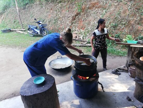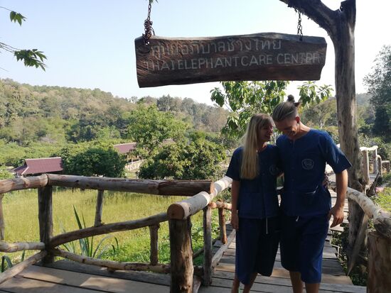 Wir hatten einen Guide, der uns den ganzen Tag durch die Anlage begleitete und uns alles über die Dickhäuter erzählen konnte, ganz für uns alleine. Wir bereiteten Snacks und Medizin für die fünfzehn Tiere zu, verfütterten dieselben, duschten die Elefantendame Mae Bur Kam und verbrachten viel Zeit mit ihr. Als Highlight des Tages gingen wir mit ihr zu einem kleinen Fluss, wo sie sich in dem angenehm kühlen Wasser niederließ und von uns mit großen Wurzelbürsten abgerieben wurde.