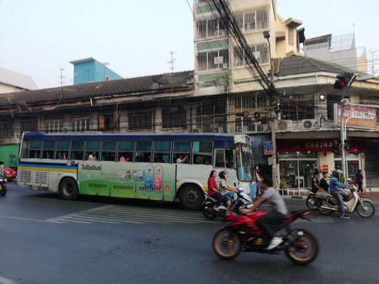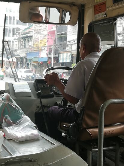 Wir nahmen den Doppeldeckerbus. In der obere Etage ganz vorne sitzend vergingen die elf Stunden Fahrt wie im Fluge und da waren wir auch schon in der Megacity Bangkok. Rund eine Stunde fuhren wir durch die äußeren Bezirke, stiegen in ein Taxi um, das uns dann für eine weitere halbe Stunde durch das Stadtgewirr kutschierte und bis zu unserer Unterkunft brachte.