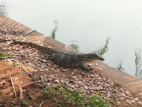 Wir besuchten am ersten Tag einen Park mit angeschlossenem Palast, den Dusit Palace. Zumindest hatten wir das vor, wenn in diesem Teil der Stadt nicht ALLES verriegelt und verrammelt gewesen wäre. Sogar der Zoo war hier zu. Und das dem Anschein nach nicht erst seit gestern. Von außen sah das ganz schön nach Jurassic Park aus. In einem Kanal sahen wir zum ersten Mal einen Waran - wild, nicht aus dem geschlossenen Zoo ausgebüchst.
