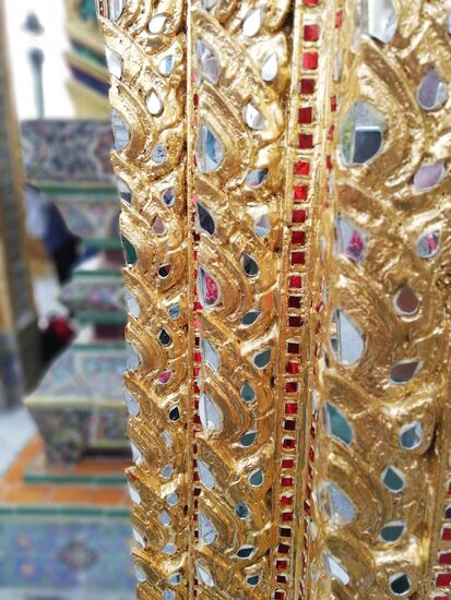 Gut, Sightseeing Anlauf Nummer 2: den nächsten Tag starteten wir mit dem völlig überteuerten Königspalast. Gold, wohin das Auge blickt. Ein Tempel aufwändiger gestaltet und eine Halle prunkvoller verziert als die nächste. Toll, aber irgendwie auch befremdlich. Der Königs-Hype ist in Thailand extrem. Überall stehen viele Meter hohe Porträts des Monarchen an Straßenecken und jede gute Thaifamilie hängt sich natürlich ein Bild von ihm in die Bude. Majestätsbeleidigung wird hier noch immer empfindlich bestraft. Auch wenn das alles nur ein kleiner Aspekt des gesamten Gesellschaftssystems ist, erkennt man ziemlich leicht: Thailand ist nicht das chillige Hedonistenfleckchen, für das es bei uns viele Menschen halten. Hier gibt es keine echte Demokratie, das Militär hat viel zu viel Macht und der König ist quasi ein Halbgott.