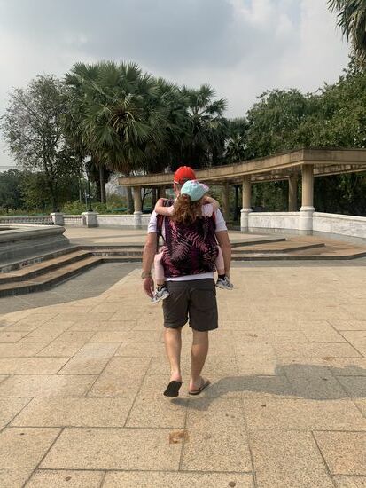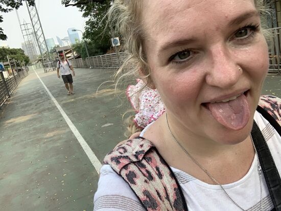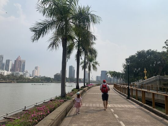Heute war wieder zuerst Pool für die Damen (übrigens bin ich um ca. 3 Uhr eingeschlafen. Früher konnte ich das auch besser mit der Zeitumstellung!) u danach wollte doc mit uns den benjakitti-Park besuchen und von ihm zum Lumpini-Park laufen. Auf der Green-Mile. Green! Was ist eure Assoziation? Richtig! Meine auch. Wisst ihr, was sich dahinter verbirgt? Eine Fuß-und Radweg. Entlang einer Kloake. Und der Weg ist einfach.... Achtung... grün angemalt! Die sind so schlau! Mir ist fast das Gesicht eingeschlafen u ich habe jonna bei 32grad in der Trage Trepp-auf und -ab getragen ohne zu maulen. Bis. Ja. Bis er zugibt, dass er das wusste! Er dachte, es wäre eine tolle Idee und die Kinder hätten Auslauf. Muhahahaha. Irgendwie ist die Aufgabenteilung riskant: er plant die Tage u Ich schreibe den Blog! Und ihr wisst, doch tut alles fur eine gute Story!