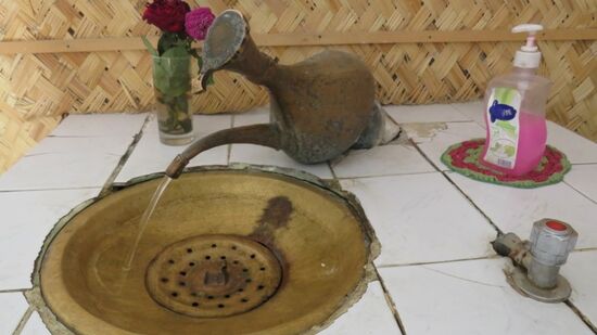 Ein Dank finanzieller Hilfe aus Deutschland renoviertes Restaurant glänzt mit solchen Wasserhähnen im Toilettenbereich,