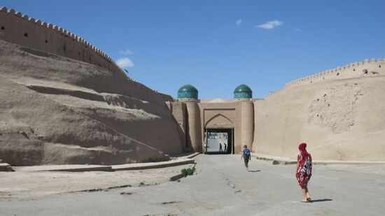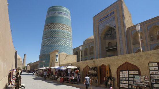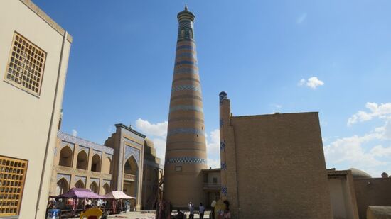mit dessen Bau 1851 begonnen wurde und das lt. Plan so hoch werden sollte, dass man es auch noch vom 250km entfernten Bukhara hätte sehen können. Dummerweise verstarb der Khan schon 1855, das bedeutete zugleich Ende der Bauarbeiten und so wirkt der Turm nur zu kurz, zu fett, unproportioniert. Wir gehen weiter, vorbei am North Gate