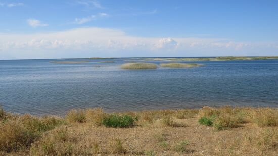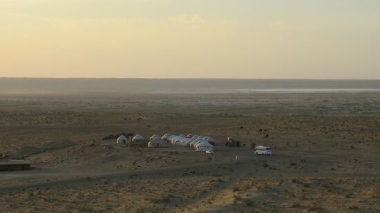 aus einer Ableitung des Syr-Darya 1969 künstlich angelegt und heute bereits versalzt, wo wir in den Dünen die Nacht verbringen.