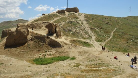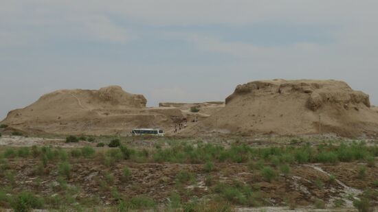 Zum Abschluss des Tages noch Toprak Kala, wo zum ersten Mal heute ein Ticket verkauft wird (E=Som 5.000 pP), der Eintrittspreis mit ‚archäologische Stätte‘ gerechtfertigt wird