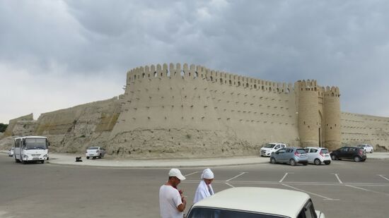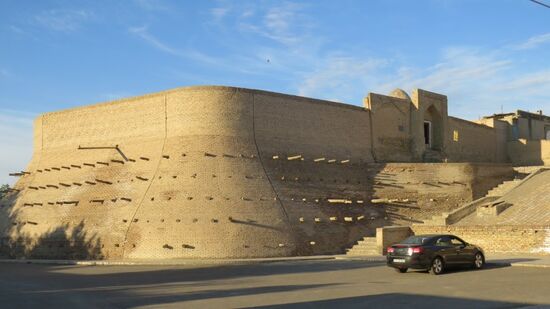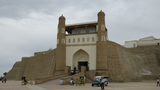 Am nächsten Morgen, so etwa 80km vor Bukhara ist wieder mal ‚Schluss mit Lustig‘, genauso überraschend wie dieses ca. 250km lange Stück Autobahn im Irgendwo begonnen hat, geht es auch wieder im Nirgendwo zu Ende, die ‚rauhe Wirklichkeit‘ usbekischer Landstrassen hat uns wieder fest im Griff. Gerüttelt und geschüttelt erreichen wir schliesslich Bukhara, lassen uns auf dem grossen Parkplatz hinter dem Ark,