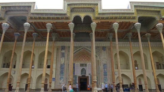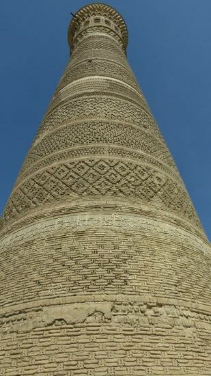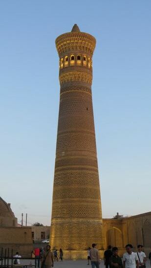 das schon Dschingis Khan so beeindruckte, dass er es vor einer Zerstörung bewahrte, während die Vorgängerin der nebenan liegenden Kalon Moschee,