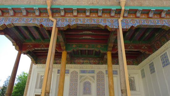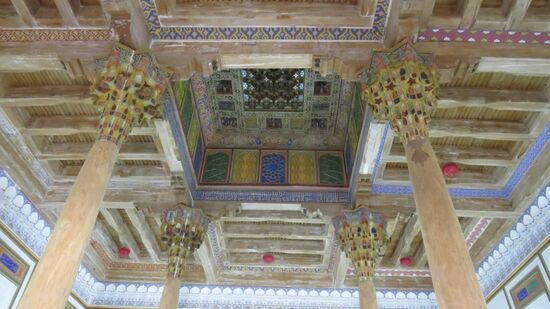 Bevor wir Bukhara endgültig den Rücken kehren noch schnell ein Besuch im Sommerpalast, dem Ort an dem sich der Emirs in den letzten Jahren seiner Regentschaft überwiegend aufhielt, nachdem die Räume im Ark ja mehr und mehr in Verfall gerieten. Bei der Ausstattung dieses Palastes wurde nicht gespart, schon das prächtige Eingangsportal eine Augenweide,