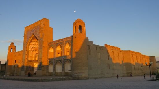 sowie die Abdul Aziz Khan Medresse im Abendlicht