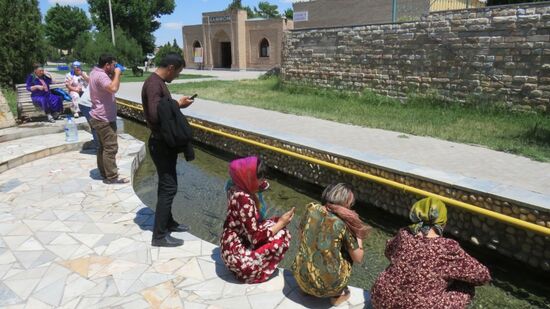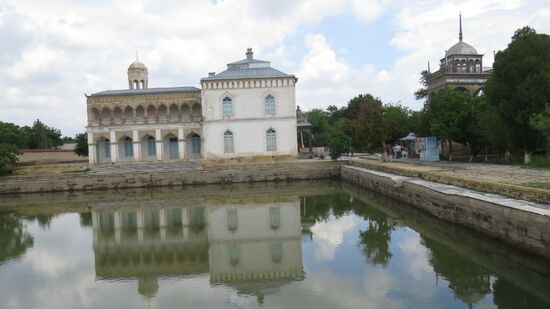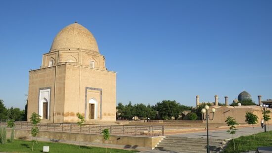 das Chasma Ayub Mausoleum, das über einer Quelle erstellt zugleich auch noch ein Museum über die Wasserversorgung von Bukhara enthält und gegenüber das futuristisch anmutende Memorial an Imam Ismail al-Bukhari.
