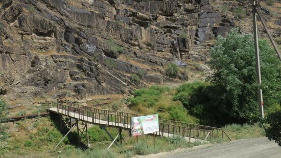 Wenn man schon bei den Petroglyphen übernachtet, dann muss man sie am nächsten Morgen natürlich auch anschauen, also erst mal eine kurze Runde um unser Camp, noch schnell über diese Brücke