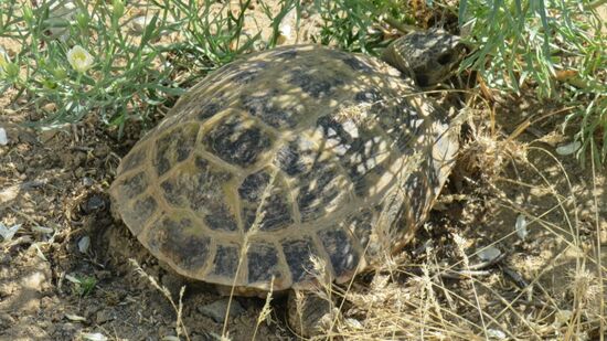 Auf der Weiterfahrt werden wir erst mal von zwei solcher, wir nennen sie mal Usbekischen Steppenschildkröten, ausgebremst