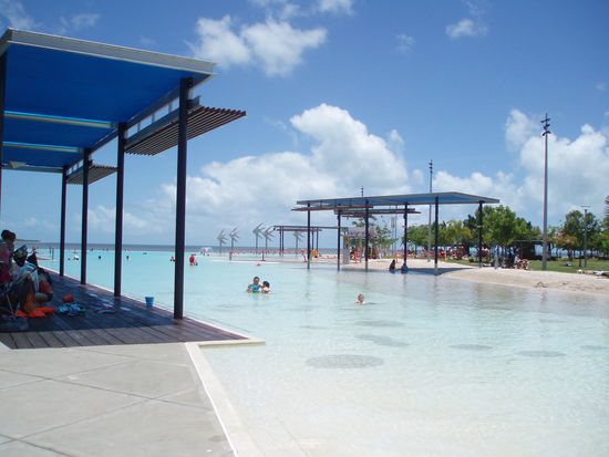 Am Ende der Esplanade befand sich eine große Salzwasserlagune, an der jede Menge Trubel herrschte. Touristen wie Einheimische lagen in der Sonne, zogen ihre Bahnen im Wasser oder saßen einfach da und unterhielten sich. Ein wunderbarer Ort, um sich ins Gras zu setzen und dem regen Treiben am Pier zuzusehen.