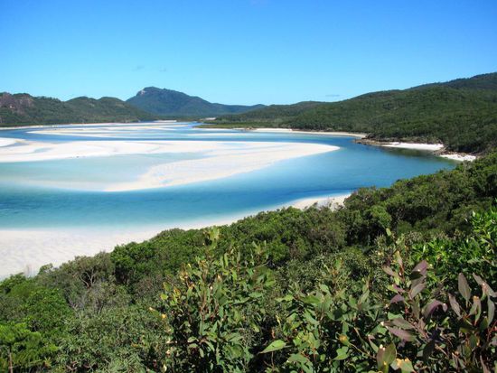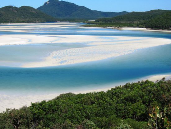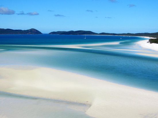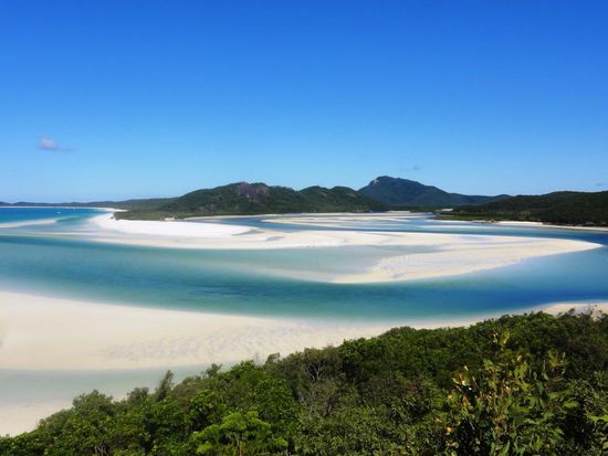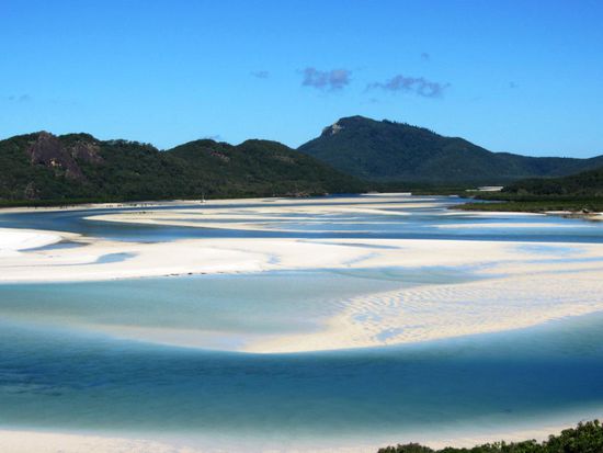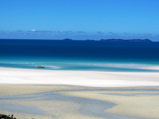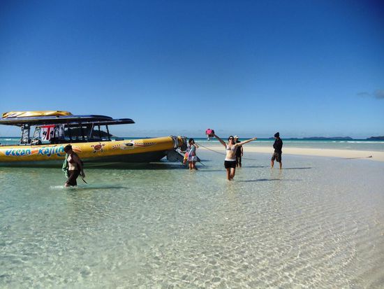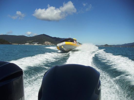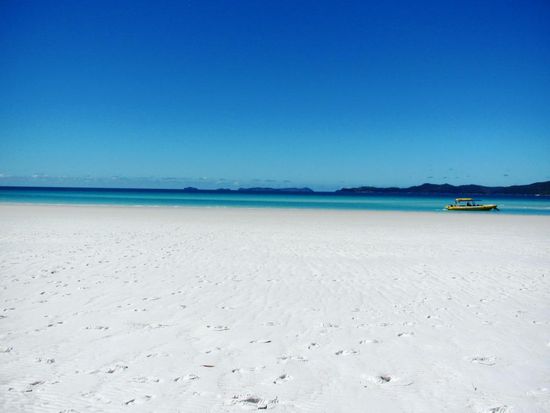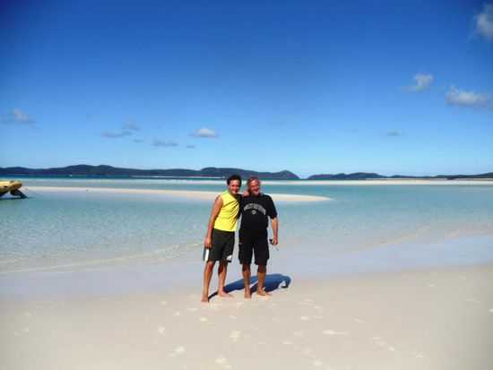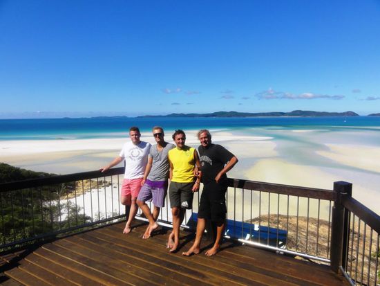 Wir wollen mit unseren Deutschen Freunden am Montag zum Great Barrier Reef rausfahren und schnorcheln gehen. Nun geht es um das Buchen dieses Ausfluges. Es hat hier diverse Anbieter, bei welchen man verschiedene Ausflüge buchen kann. Natürlich gibt es auch verschiedene Preisklassen. Zwei junge Franzosen, Nachbarn von uns auf dem Campingplatz in Airlie Beach, geben uns den Tipp, mit der Firma Ocean Rafting diesen Trip zu unternehmen. Diese Firma ist ein wenig teurer als die Anderen, bietet jedoch mit ihren Schnellbooten einen unvergesslichen Tagesausflug an. Wir bezahlen pro Person 120 Dollar, die Konkurrenz hätte 99 Dollar gekostet. Sie versprechen uns zwei Schnorchelgänge und ein Mittagessen an einem der schönsten Strände der Welt. Die zwei Franzosen zeigen uns Fotos und schwärmen von ihrem Ausflug. Am Montagmorgen um 9.00 Uhr werden wir vor unserem Campingplatz abgeholt und mit einem Kleinbus geht es zum Hafen. Patric und Denis, welche den Ausgang am Sonntagabend sehr genossen haben und sehr spät schlafen gegangen sind, müssen noch ein wenig leiden. Sobald wir aber eines der vier Boote, die diese Tour befahren, bestiegen haben, wachen sie endgültig auf. Sobald wir den Hafen verlassen haben, geben die Schnellboote Vollgas. Jedes Boot verfügt über rund 450 PS Leistung und diese Dinger gehen ab wie eine Rakete. Es ist wirklich Rafting pur. Bald jedoch trennen sich die vier Boote und wir steuern den ersten Schnorchelplatz an. Wir alle sechzehn Personen auf unserem Boot haben einen Anzug gegen das doch recht kalte Wasser erhalten. Die meisten gehen jedoch ohne diesen Anzug in das glasklare Wasser. Die Sonne scheint und es ist ein wunderschöner, warmer Tag. Im Wasser jedoch ist es relativ kalt. Das Schnorcheln aber ist ein überwältigendes Erlebnis. Wir alle sind umzingelt von hunderten farbigen Fischen in allen Grössen. Auch auf dem zweiten Tauchgang wimmelt es von Fischen. Hier hat es sogar noch grössere Fische. Nach den zwei Schnorchelgängen fahren wir auf die Whitsunday Island. Das ganze Gebiet heisst hier Whitsundays und diese Insel ist mit 109 Quadratkilometer die grösste Insel im Gebiet. Unsere Mittagsrast machen wir an dem Whithaven Beach. Alleine schon für den Blick auf diesen Beach lohnt sich der Tagesausflug. Solche Bilder sieht man ab und zu auf Postkarten oder in Prospekten und denkt sich dabei immer, das ist ja nur ein Bild und in Wirklichkeit sieht alles anders aus. Aber so eine schöne Beach mit so schönem, in allen Farben schimmerndes Wasser, haben wir alle noch nie gesehen. Es ist ein Traum und eigentlich unbeschreiblich. Wir hoffen, mit unseren Fotos euch ein wenig diesen Traum miterleben zu lassen. Zusammen spazieren wir auf einen Aussichtspunkt auf einem kleinen Berg. Die Aussicht ist grandios. Auf dem Weg zu diesem Aussichtspunkt sehen wir auch Schlangen. Die meisten von uns gehen ohne Schuhe und der Anblick der Schlangen lässt ein ungutes Gefühl in uns hoch kommen. Zwischen Strand und dem Wald befindet sich ein kleiner Natursee, in welchem sich tausende von Krebsen tummeln. Im Sand sehen diese Krebse wie ein grosser, schwarzer Teppich aus. Wir müssen sehr vorsichtig gehen, um nicht auf diese Tiere zu treten.