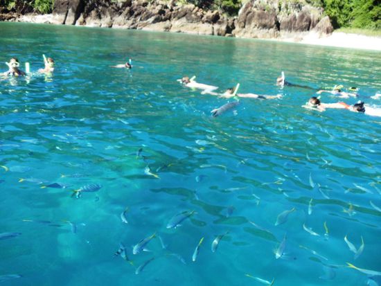 Beim zweiten Schnorchelstopp gingen nicht mehr alle ins Wasser. Für viele war das Wasser einfach zu kalt und die Fische hier waren viiiiel grösser....