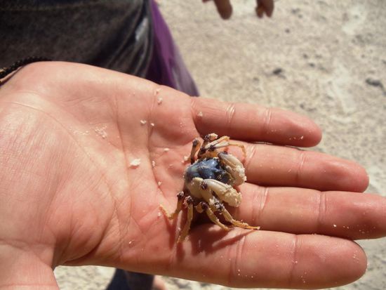 Es hatte keine Quallen und keine Krokodile, da jetzt nicht Saison war. Also, ab ins Wasser. Es piekten uns nur ein paar Wasserflöhe.