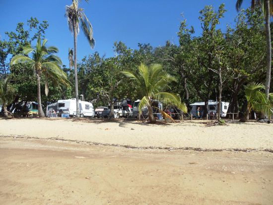 Am Mittwoch, den 1. Juni, verlassen wir Airlie Beach. Die vier erlebnisreichen Tage hier haben wir genossen. Airlie Beach ist auf jeden Fall ein Besuch wert und auch eine Boots- und Schnorcheltour empfehlen wir jedem Reisenden, welcher sich in der Gegend hier befindet. Da der Ausgang der Anderen Vier sehr lang dauerte und sie erst spät oder früh am Morgen ins Bett gekommen sind, fahren wir erst gegen Mittag ab. Unser Tagesziel ist Townsville und wir verabreden uns dort mit den Jungs auf einem Campingplatz. Wir treffen uns dann auch auf diesem Campingplatz und verbringen einen ruhigen Abend. Patric und ich fahren am nächsten Tag weiter. Unser Ziel ist ein Zeltplatz in der Nähe von Mission Beach. Dieser Zeltplatz hat uns die zwei Australischen Ehepaare angegeben und sehr empfohlen. Er soll an einer kleiner Bucht liegen mit dem Namen Bingil Bay. Dieser Platz ist dann auch ein kleines Schmuckstück und liegt direkt am Meer. Es ist sehr idyllisch hier. Auf diesem kleinen Campingplatz hat es nur etwa zehn Camper, hauptsächlich Australier. Er kostet nur 18 Dollar, dafür hat es aber auch keinen Strom. Die Bucht ist grossartig und das Meer ladet zum Baden ein. Es gefällt uns hier und wir beschliessen drei Nächte zu bleiben. Wir haben den drei Deutschen gesagt, wo wir sind und sie kommen dann am nächsten Tag auch auf diesen Campingplatz. Patric und ich haben uns in einem kleinen Supermarkt noch Eis für unsere Kühlbox besorgt und können so wenigstens das Bier kühlen. Am Abend kochen wir alle zusammen und sitzen mit unserer Gaslampe noch beisammen. Es ist ein sehr ruhiges Plätzchen hier. Den Strom vermissen wir schon ein wenig, läuft doch unser Kühlschrank nicht und wir können auch unsere PCs und Handys nicht aufladen. Für ein paar Tage aber ist das kein Problem. Die Australischen Camperprofis behelfen sich mit Solaranlagen, mit welchen sie mit Hilfe der Sonne Strom und Energie erzeugen.