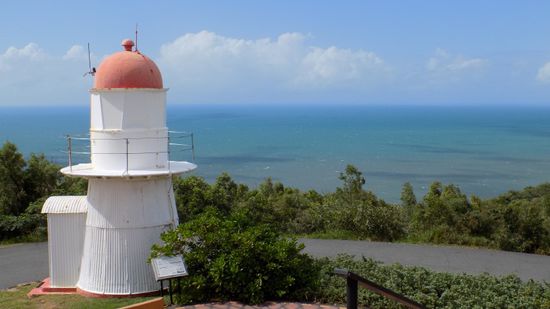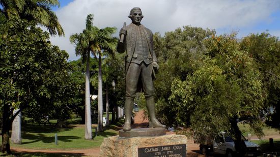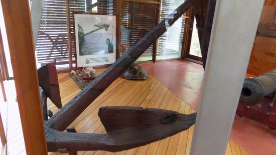 Dazu bietet die raue Oberfläche der Felsen einen idealen Nährboden für Flechten und Moose und schon sind die ganzen Felsen tief schwarz eingefärbt. In Cooktown gehen wir erst mal ins Museum und bestaunen den riesigen Anker und die Kanone, die Cook 1770 nach seiner Havarie im Reef dort über Bord werfen lies