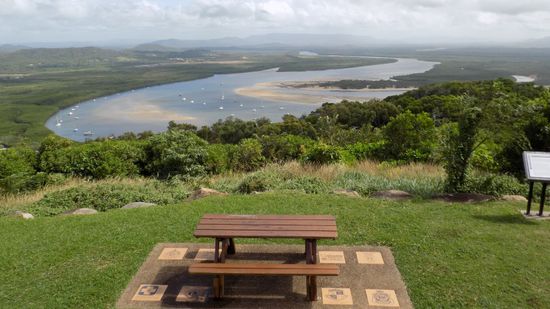und am ‚hier wurde die Endeavour repariert‘ Erinnerungsstein vorbei, finden ein freies WiFi und stellen das letzte Kapitel unseres Berichts ins Netz, gehen hoch zum Grassy Hill Lookout