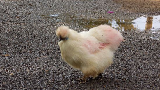 hinter einem Campingplatz mit Hühnerzucht versteckt.