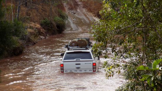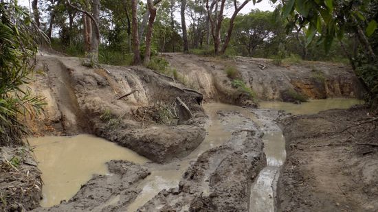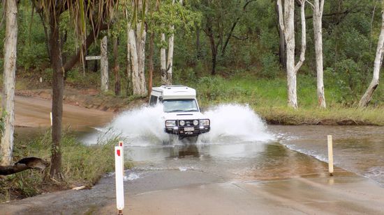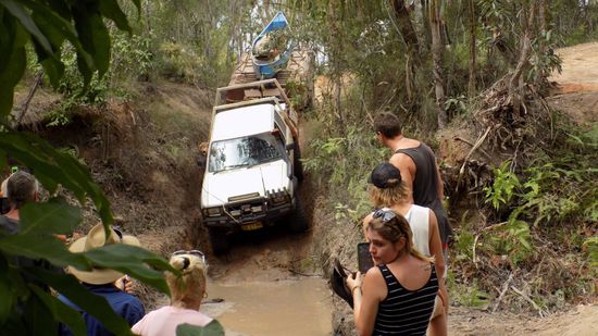 wer da bereits zögert, der sollte besser auf die Telegraph Road zurückfahren, denn ab jetzt stehen unzählige Wasserdurchfahrten auf dem Programm. Am Palm Creek, rein in den Schlamm