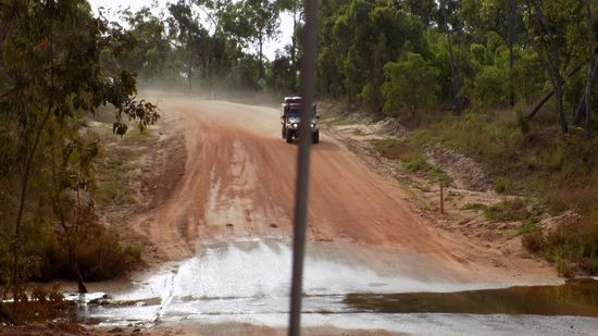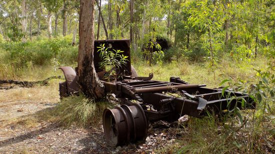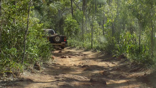 und friedlich vor sich hin rosten. Zurück auf dem PDR geht es zuerst ein kleines Stück Richtung Norden, bevor wir dann an einer Weggabelung auf dem PDR nach Westen, nach Weipa abbiegen - die Strecke geradeaus Richtung Cape York heisst von jetzt an Old Telegraph Road.