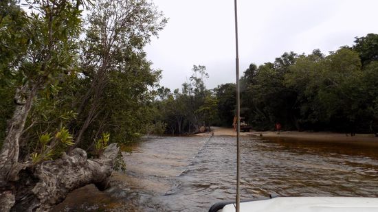 die ihn spielend aus dem Weg räumt. Deswegen haben wir die zwar ursprünglich nicht gekauft, aber praktisch war das schon. 5km weiter stehen wir am Südufer des Jardine River,