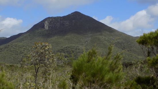 die restlichen kleineren Bachquerungen leicht zu bewältigen. Im Iron Range NP dann ein Blick auf den knapp 600 m hohen Granitkegel des Mt. Tozer,