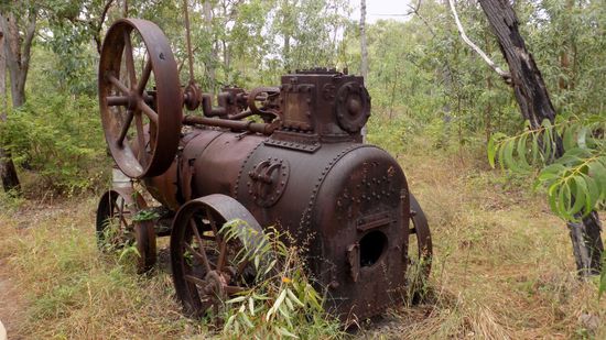 wo alte Dampfmaschinen aus der Goldgräberzeit vom tropischen Urwald langsam überwuchert werden