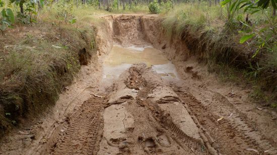 Die Strasse selbst, meist eine gepflegte Staubstrasse, mal auch schon schön geteert, eigentlich problemlos zu befahren und auch die feuchten Stellen alle bisher absolut harmlos, Wassertiefe < 10cm.