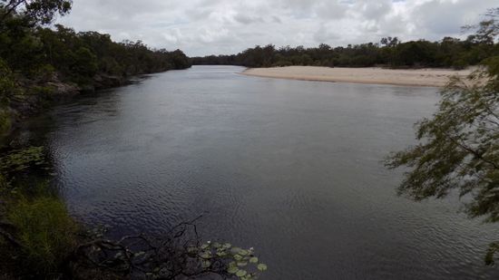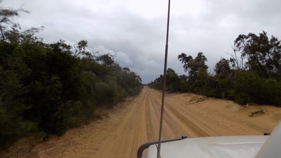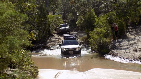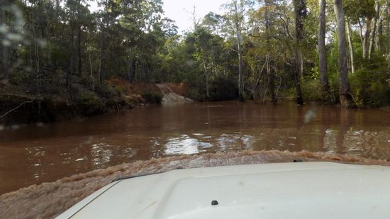 während Dulicounty River und Bertie Creek eher zu den einfachen Querungen zu zählen sind. Wir folgen den Anweisungen im Führer und benützen die Gunshot Creek Crossing Umgehungsstraße, eine Sandpiste, die Erinnerungen an Fraser Island aufkommen lässt,
