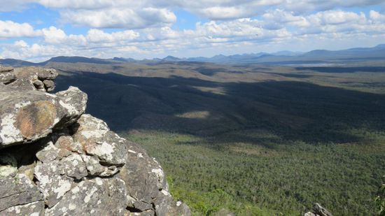 Sandsteinformationen, die zum Blick (Sprung???) in die Tiefe verlocken. Vom Reids Lookout nochmal ein Blick Richtung Süden in die Ferne,