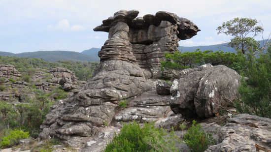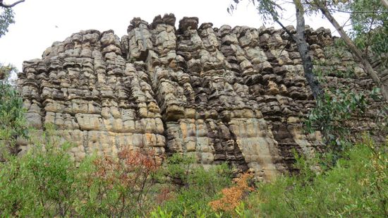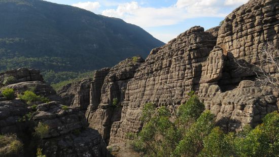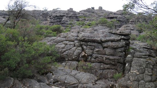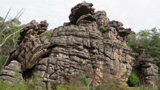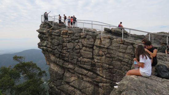 und auf der anderen Seite wieder hoch zum Bunjil Lookout, einer dieser Aboriginal Treffpunkte mit seinen Jahrtausende alten Sagengestalten.