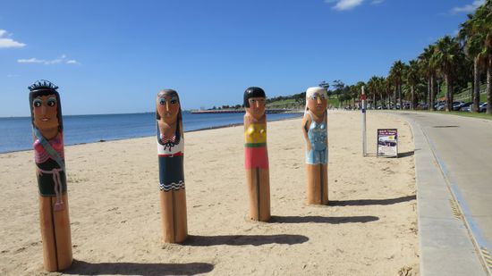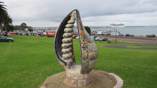 Wir erreichen Geelong, der zweitgrößten Stadt Victorias, gehen an der mit solchen Kunstwerken dekorierten Esplanade entlang,