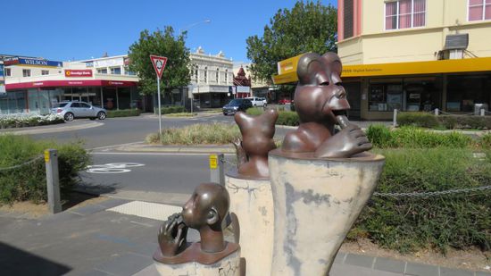 Wir fahren nach Warrnambool, der groessten Stadt hier an der GOR, bewundern diese Skulptur am Strassenrand