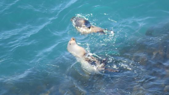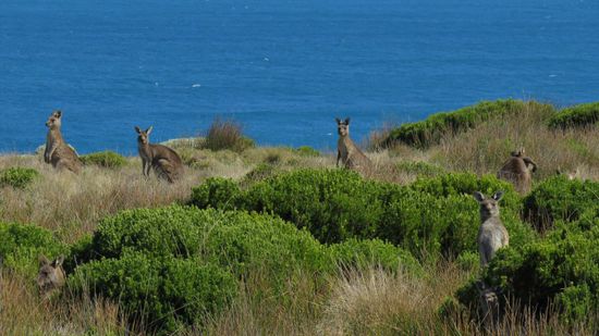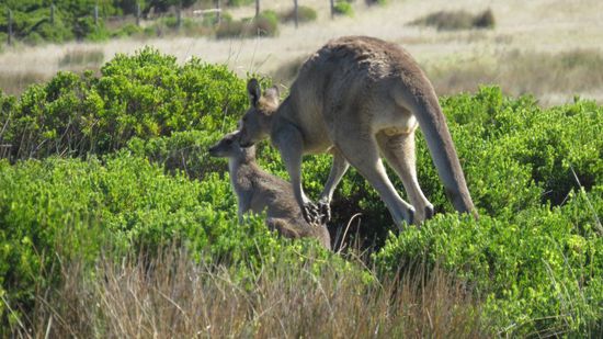 fahren dann weiter nach Cape Bridgewater, wo wir in 2h die 6km lange Wanderung H/R bei 250hm zur Fellrobbenkolonie zurücklegen, dabei unterwegs von zahlreichen Kängurus kritisch beobachtet werden,