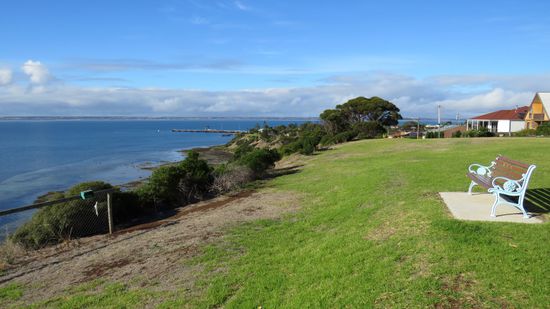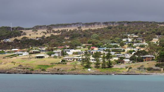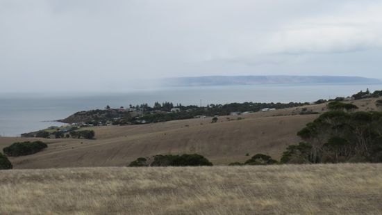 schauen mal runter auf den Ort Penneshaw und rüber nach Cape Jervis,