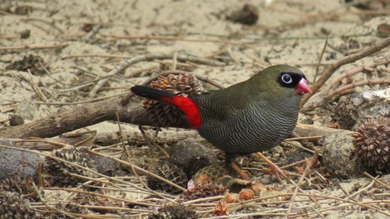 einen Fire Tail Finch (Feuerschwanz Finken)