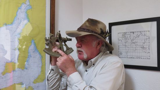 werden von unserem SUPER!!! Guide Mick in die Funktionsweise eines Sextanten eingewiesen
